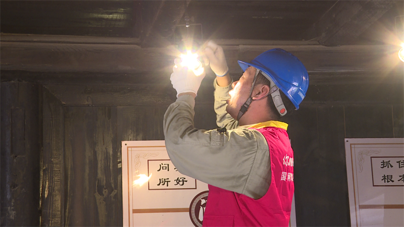 “木构建筑最怕‘电火噬心’。”参与行动的电力工作人员指着古居内曾杂乱交织的电线说,过去随意牵拉的线路不仅像“蜘蛛网”破坏了古居的古朴风貌,更因老化磨损成为威胁木构建筑安全的“隐形火种”。此次行动中,电力团队带着专业设备对古居进行“全身体检”:从配电箱到开关插座,逐一检测运行状态;对不符合安全标准的老旧元件“应换尽换”,让每一段线路、每一台设备都符合古建保护的特殊要求。