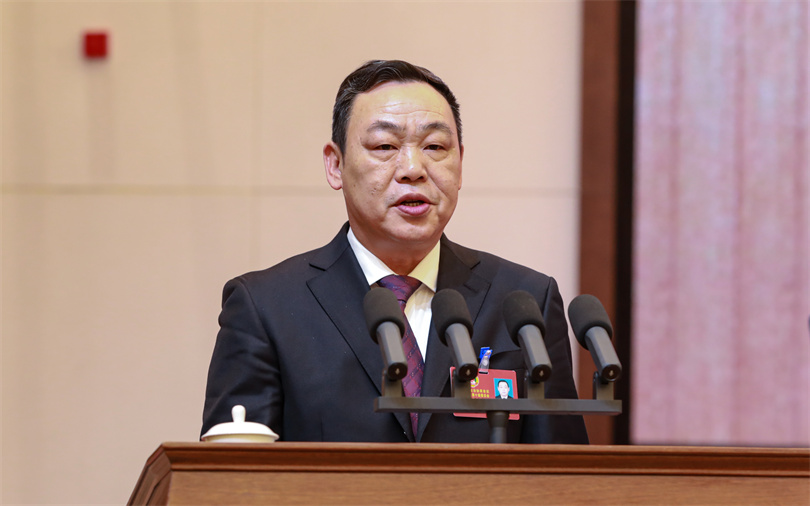 林区政协主席王文华代表林区政协十届委员会常务委员会向大会报告工作 (肖庆兵 摄)