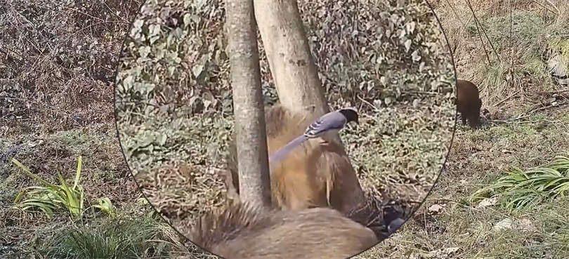神农架林区融媒体中心(记者房泽洋 通讯员杜华)近日,神农架国家公园管理局工作人员在整理红外相机素材时,意外捕捉到一幅极具生态意趣的自然图景:一群憨态可掬的野猪正埋头于枯叶腐殖层中拱地觅食,几只羽色斑斓的红嘴蓝鹊在其身旁灵动跳跃,时而俯冲啄食、时而驻足观望,二者互不惊扰、默契相伴,构成了一曲和谐共生的“山林觅食协奏曲”。