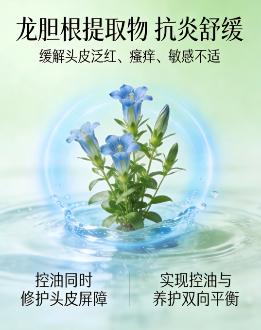 产品含双专利成分,专利号分别为ZL 201710183506.4、ZL202110065342.1。其中ZL202110065342.1对应乳酸杆菌发酵产物、乳酸杆菌、α-葡聚糖寡糖、低聚果糖组合,调节头皮微生态,抑制有害菌,从根源减少油脂过度分泌;ZL 201710183506.4对应龙胆根提取物,强效抗炎舒缓,缓解油头因出油导致的泛红、瘙痒。